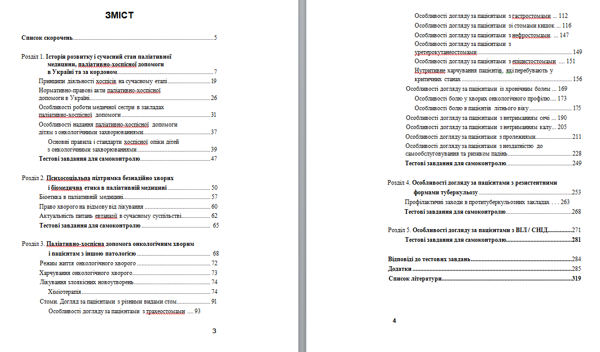 Детально розглянуто розділ з паліативно-хоспісної допомоги стомова-ним пацієнтам, особливості догляду за ними залежно від розташування стоми та змін у функціонуванні тієї чи іншої системи.
