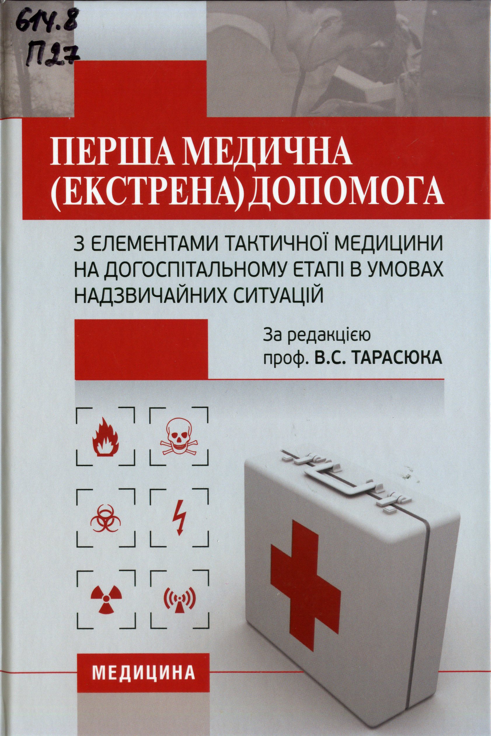 Перша медична (екстрена) допомога з елементами тактичної медицини на догоспитальному етапі в умовах надзвичайних ситуацій : [навч. посіб. для студентів вищ. мед. навч. закл.] / B. C. Тарасюк [та ін.] ; ред. B. C. Тарасюк. — Київ : Медицина, 2015. — 368 с.